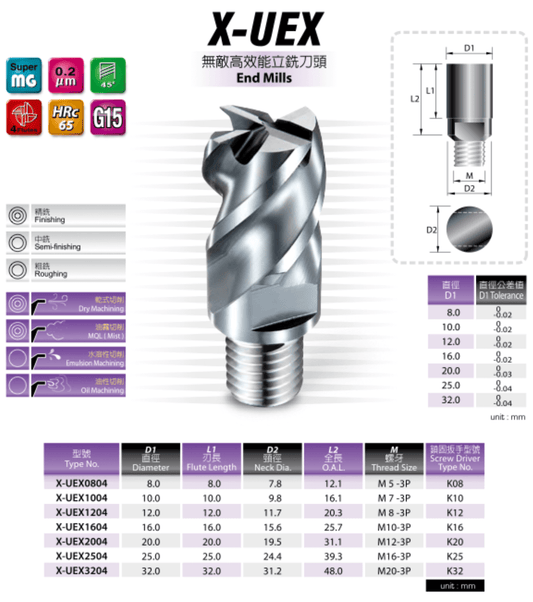 Inoltre, combinando la testa con gambi più lunghi, si può utilizzare lo strumento in profondità di taglio maggiori, estendendone la durata e la versatilità.