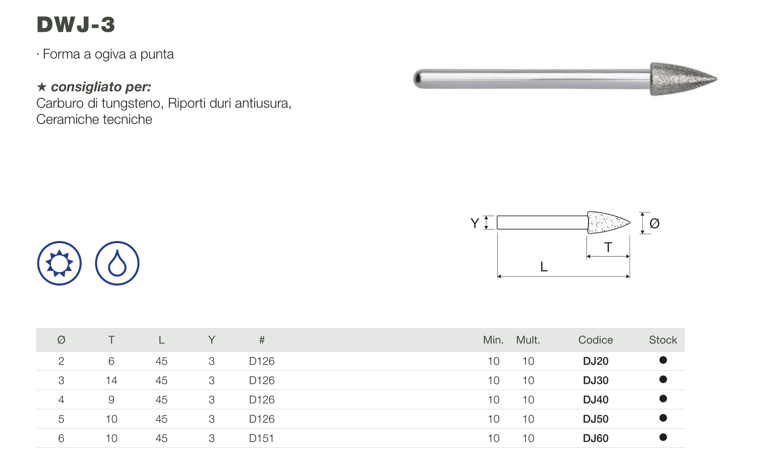 Consigliato per: carburo di tungsteno, riporti duri antiusura, ceramiche tecniche.