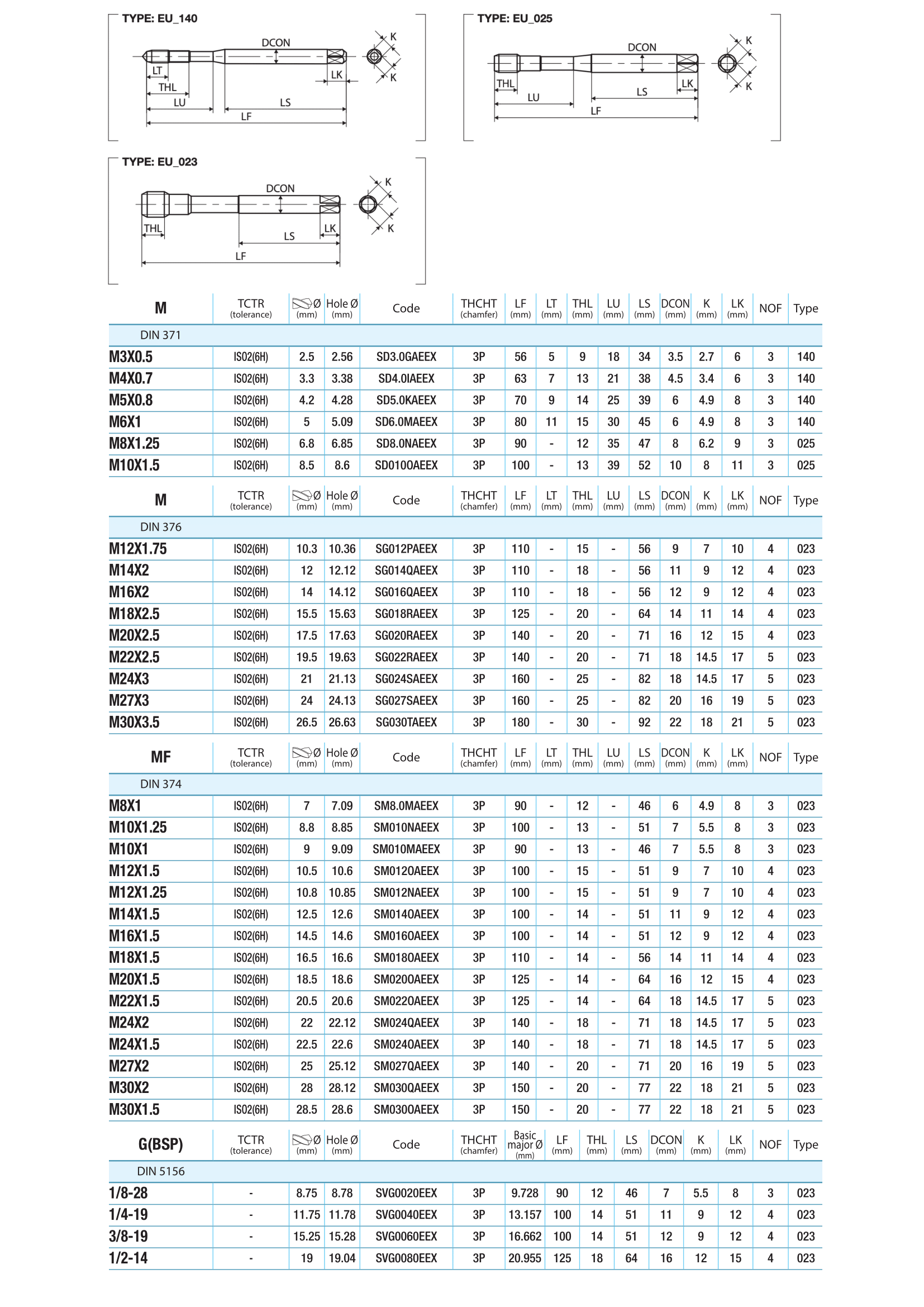 Maschi Yamawa PH-SP per fori ciechi <35HRC